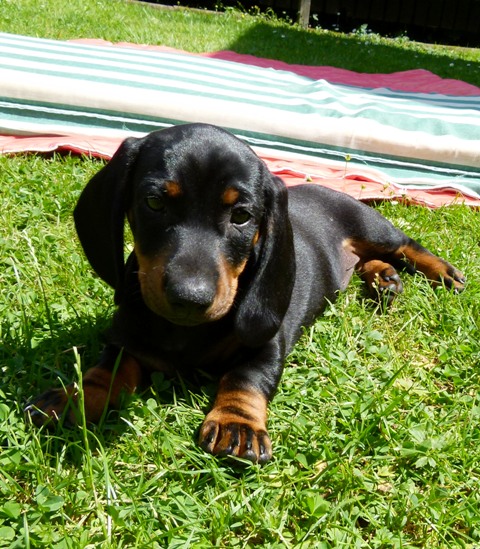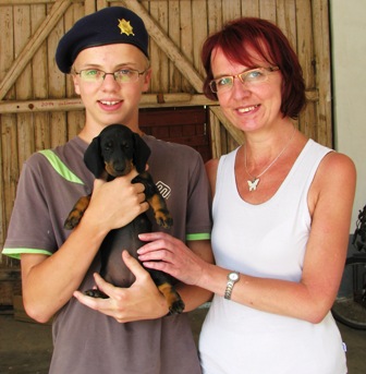 Aura byla přejmenována na Berynku a zůstala jihočeškou, bydlí nedaleko nás - v Bechyni. Je to rodinný mazlíček, loveckému výcviku se nevěnuje, ale srnky a zajíce prohání velmi ráda a její hlasitost na stopě je obdivuhodná :-)